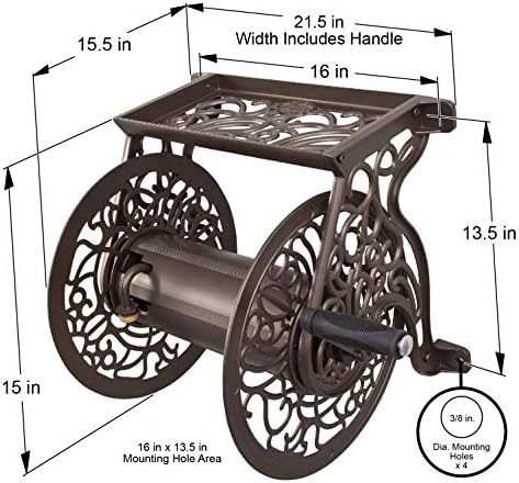 Liberty GARDEN 704 Decorative Cast Aluminum Wall Mount Garden Hose Reel, Holds 125-Feet of 5/8-Inch Hose – Bronze